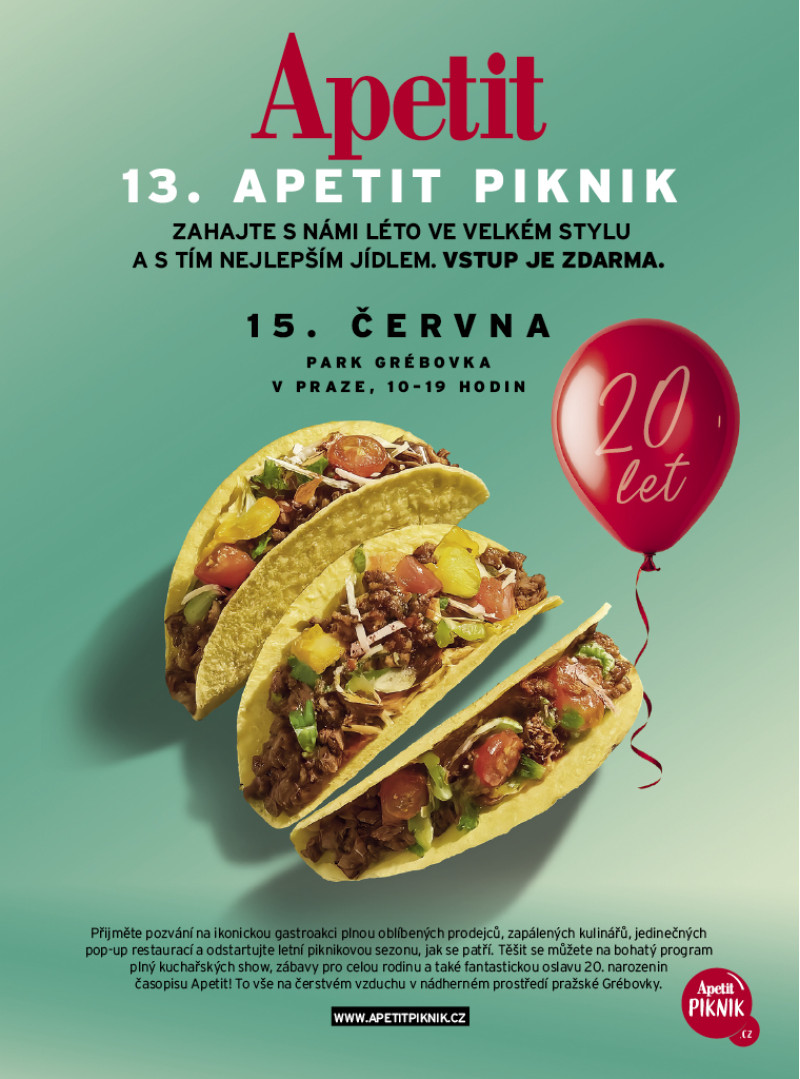 Červnové vydání Apetitu, které vychází 23. května, přináší pozvánku na letní Apetit piknik. Ten se uskuteční 15. června v pražské Grébovce a v novém Apetitu najdete seznam všech prodejců i hvězdných hostů, kteří se objeví na hlavním pódiu. Vystoupí i Pavel Berky, se kterým najdete v novém čísle rozhovor, kde vypráví o tom, jak zkouší nová jídla a co nejraději vaří sám sobě.