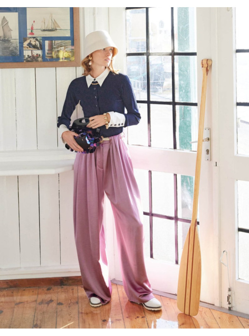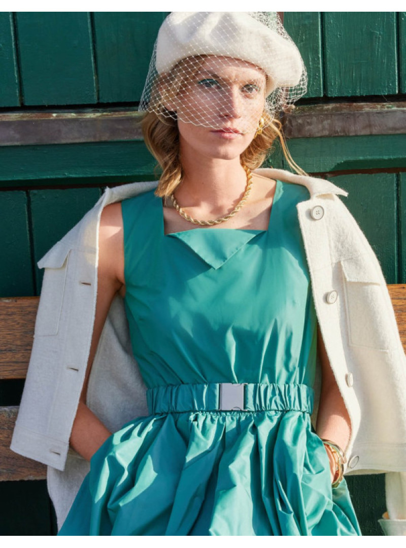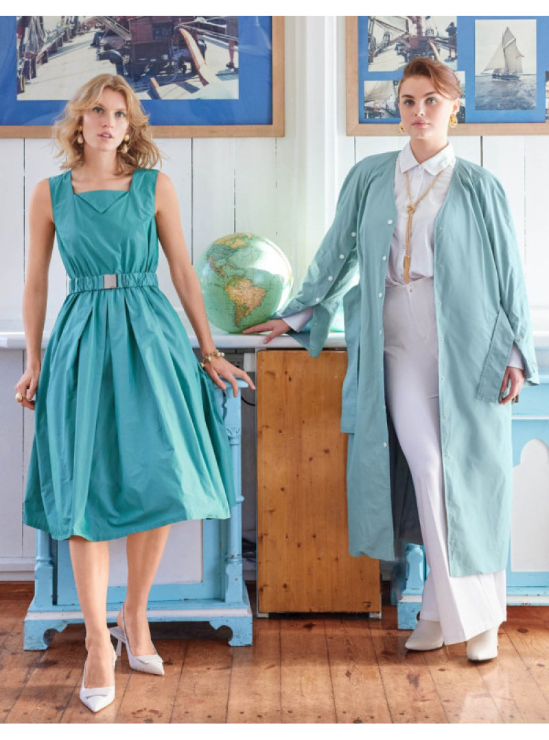 RETRO 2.0 Atraktivní krejčovské finesy v akvamarínové a šeříkové