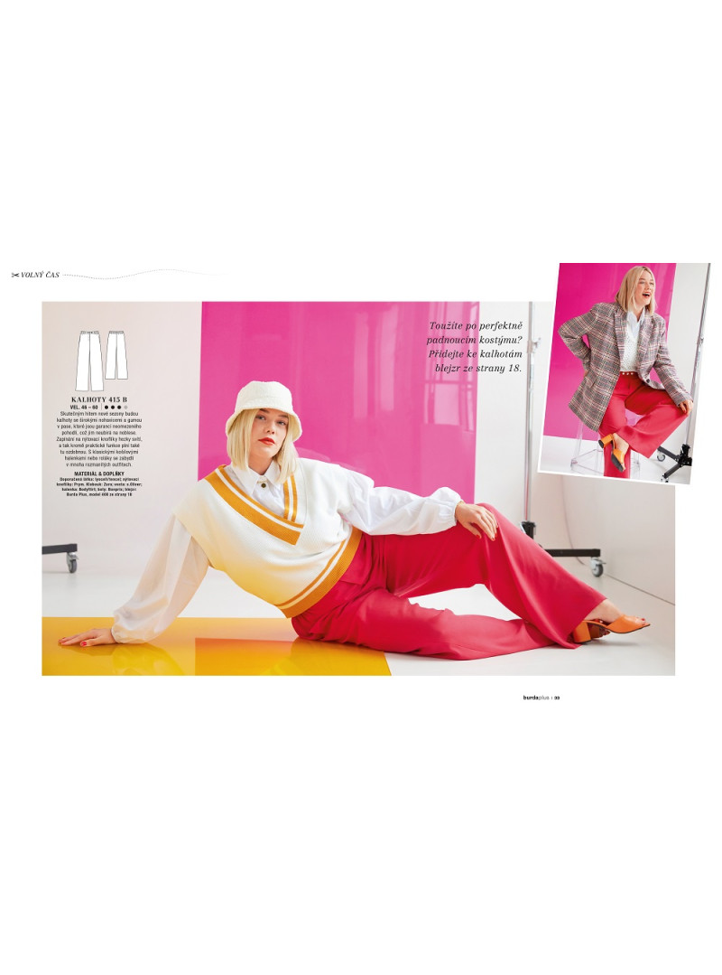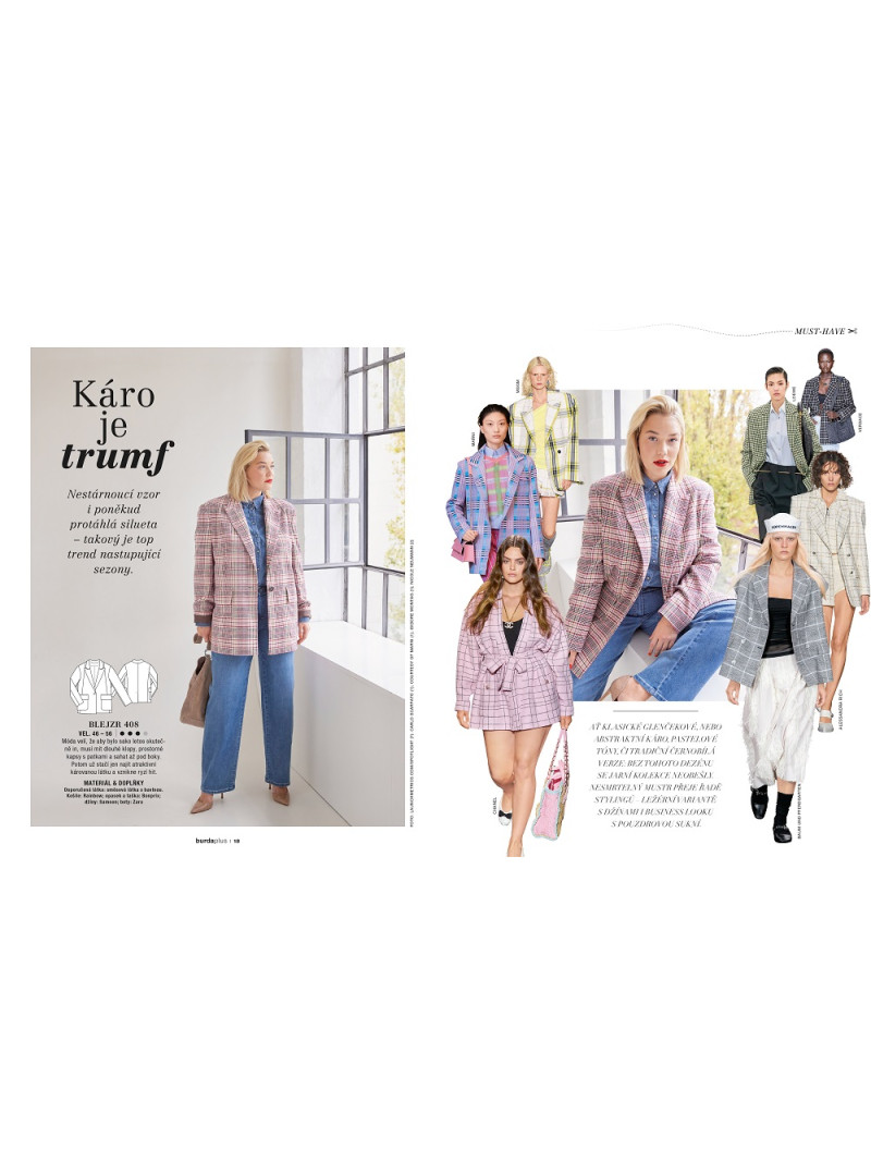 Zima se zvolna chýlí ke konci a opět před sebou máme jarní dny, které lákají k tomu vynést slušivé šaty a doplnit je o lehkou bundičku nebo sako. Určitě se už nemůžete dočkat nových výzev pro vás a váš šicí stroj, proto v prvním letošním čísle speciálu Burda Plus přinášíme svěží dávku inspirace podle současných trendů. Obohaťte svůj každodenní šatník o pár sportovních kousků v zářivých barvách i elegantní look do kanceláře. Comeback zažívá také kovbojská móda. Co se stane vaším favoritem? GO WEST Městská kolekce s prvky Divokého západu MUST-HAVE Károvaný blejzr ČISTÁ SÍLA Nápaditá halenka z bio bavlny JDEME NA TO! Volnočasové modely v pestrých tónech NEW AND OLD Business look v námořnické modré a vínově červené
