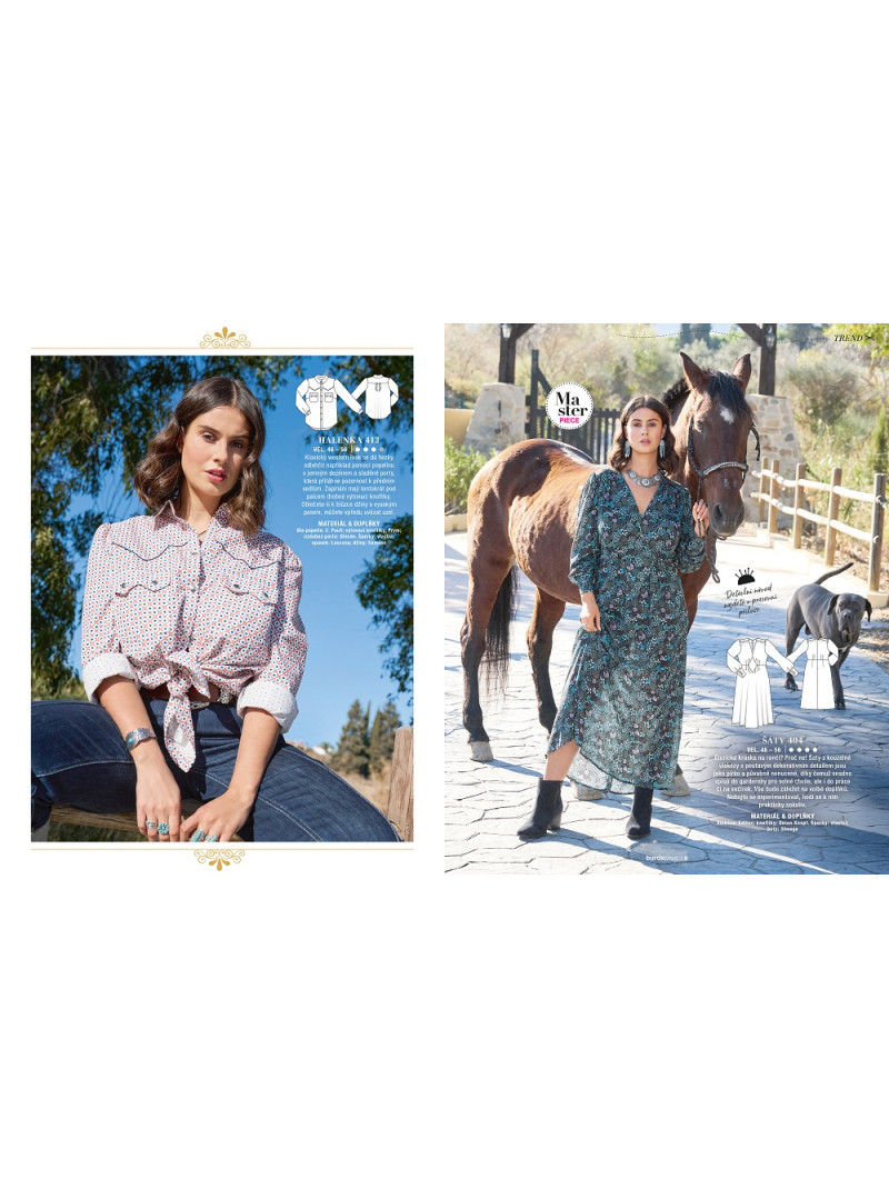Zima se zvolna chýlí ke konci a opět před sebou máme jarní dny, které lákají k tomu vynést slušivé šaty a doplnit je o lehkou bundičku nebo sako. Určitě se už nemůžete dočkat nových výzev pro vás a váš šicí stroj, proto v prvním letošním čísle speciálu Burda Plus přinášíme svěží dávku inspirace podle současných trendů. Obohaťte svůj každodenní šatník o pár sportovních kousků v zářivých barvách i elegantní look do kanceláře. Comeback zažívá také kovbojská móda. Co se stane vaším favoritem?