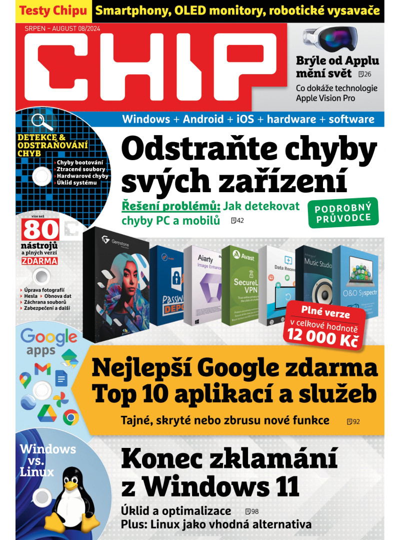 Chip své čtenáře v červencovém vydání provede profesionálním bezpečnostním IT auditem, vysvětlí koncepty bezpečnosti a důvody jednotlivých opatření. Zároveň si v testu správců hesel budete moci vybrat důležitého pomocníka pro bezpečné přihlašování k vašim účtům na počítačích i mobilech. Pomůžeme vám, abyste byli dobře chráněni před novými hrozbami. Na palubě Windows 11 je mnoho užitečných nástrojů a funkcí, které jsou ale často dobře ukryté a málokdo o nich ví. Objevte je s námi, budete příjemně překvapeni! Poradíme vám také s upgradem staršího počítače, kdy se vyplatí a kdy díky němu ušetříte nemálo peněz. A ukážeme vám, jak si ve svém domě nebo bytě snadno nastavit vlastní zabezpečovací systém. Test grafických karet pro hráče vám představí současnou nabídku modernizovaných GPU od AMD i Nvidie. Srovná jejich výkony i ceny. A předvedeme vám také několik specializovaných systémů AI, které ve specifických úlohách vítězí nad obecnými modely typu ChatGPT nebo Gemini. Na Chip DVD najdete dvě velké „věci“. První je plná verze virtuálního počítače VMware Workstation Pro, který můžeme vřele doporučit pro nejrůznější experimenty se softwarem nebo operačními systémy. Druhou je Nero AI Video Upscaler, kterou lze použít pro rekonstrukce a vylepšení videozáběrů a starých filmů. Pokud máte chuť na dobrodružnou hru, nainstalujte si Volání lásky, kde budete řešit různé logické úlohy a hledat skryté předměty. A někdo možná rád vyzkouší skutečně vydařenou, hardwarově nenáročnou náhradu Windows v podobě Zorin OS, Chip k němu přináší i užitečné návody. Užijte si léto se srpnovým Chipem!