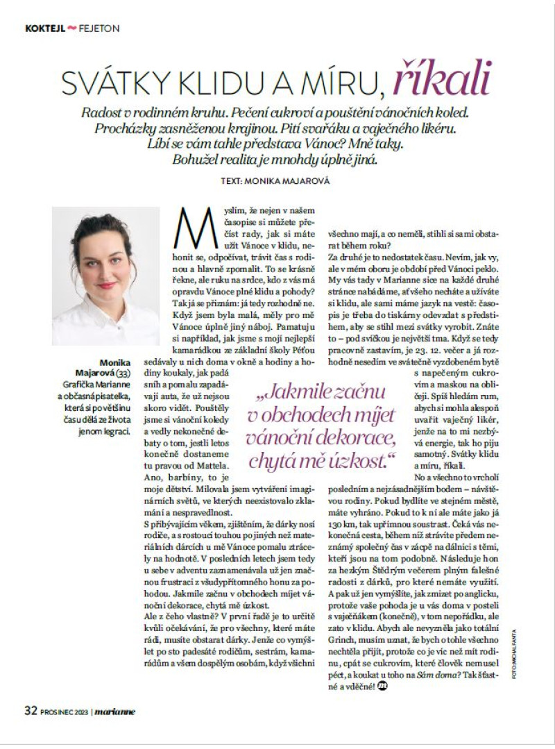 MARIANNE je lifestylový časopis pro sebevědomé a nezávislé ženy. Zakládá si na tom, aby články nebyly povrchní a bezduché. Nabízí řadu rozhovorů s významnými lidmi a precizně zpracované články na téma vztahů, zdraví, životního stylu, kultury... Na profesionální úrovni se věnuje také módě a kosmetice. Marianne, to je mix inteligentního čtení, humoru a lifestylových témat. Své čtenářky chce především inspirovat a pobavit