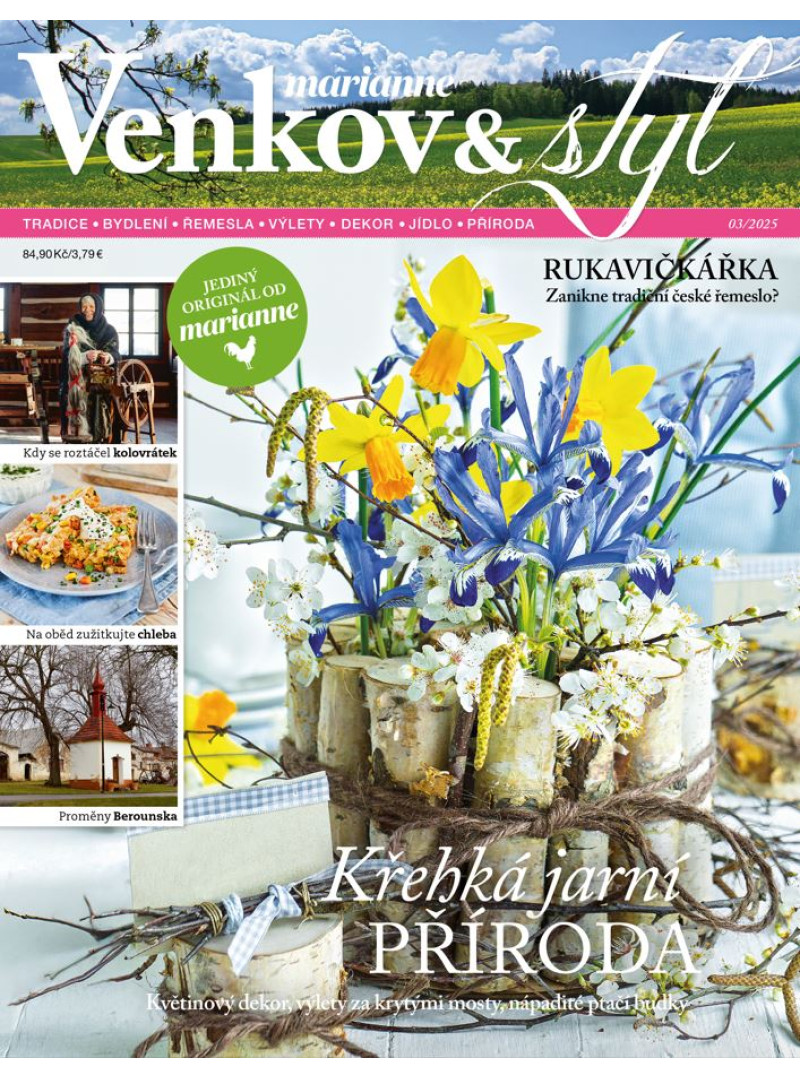 Marianne Venkov a styl se věnuje nejkrásnějším stránkám českého venkova opravdu ve velkém stylu. Zachycuje život na vesnici ze všech aspektů - od bydlení, zahrady a tipů na cestování přes chov domácích zvířat, tradiční řemesla, dětské hry až po recepty z regionálních surovin a nezapomíná ani na nejčerstvější módní trendy.Zajímavé informace si tu najdou jak aktivní lidé, toužící po úniku z města, tak milovníci domácích mazlíčků nebo děti, které prostě obrázkové časopisy milují.