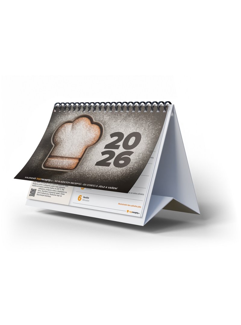 Stolní týdenní kalendář, se kterým bude rok 2026 vonět po vanilce, čokoládě a čerstvě upečených buchtách! Každý týden na vás čeká jeden ověřený recept na moučník nebo sladké jídlo – od rychlých dobrot ke kávě až po dezerty, které ohromí celou rodinu. Recepty jsou seřazeny podle sezóny, takže v létě nesmí chybět ovocné knedlíky, na podzim vás potěší třeba hruškový koláč a v zimě provoní kuchyň vánoční cukroví. K tomu navíc každý týden citát o jídle a vaření, který vám zaručeně zlepší náladu, a přehled světových dnů věnovaných jídlu – protože každá příležitost upéct či uvařit něco dobrého se počítá! Stolní týdenní kalendář, 53 sladkých receptů, 53 citátů o jídle a vaření.