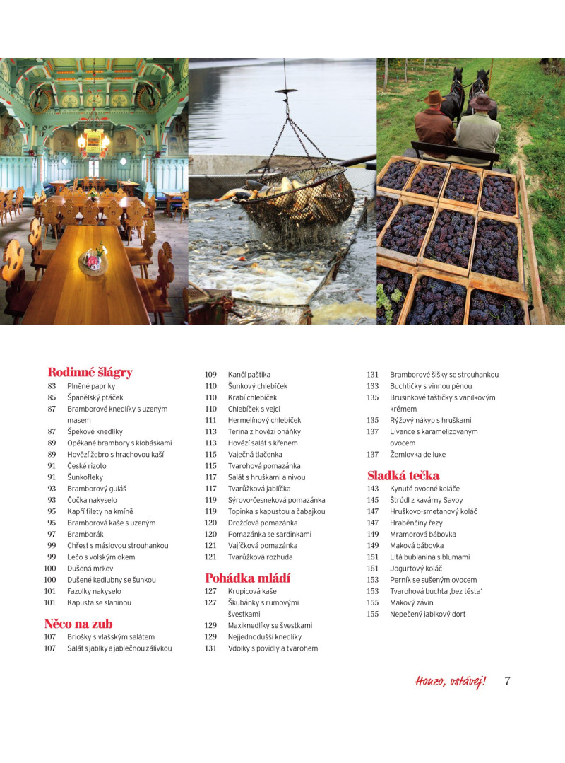 Každá kapitola je uvedena servisní dvoustránkou, kde se dozvíte, jak správně nakupovat a používat typicky české suroviny, něco málo z historie a ze života gastrovelikánů, např. V. Vrabce, M. D. Rettigové, A. Kejřové a dalších. Vychutnejte si s námi to nejlepší z naší kuchyně!