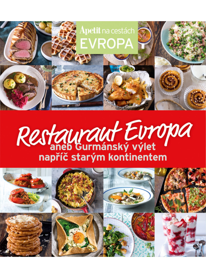Restaurant Evropa aneb Gurmánský výlet napříč starým kontinentem Více než 150 oblíbených receptů ze všech koutů Evropy S novou knihou z edice Apetit na cestách procestujete Evropu křížem krážem. Nabízíme v ní víc než 150 receptů z 29 zemí. Všechny jsme je vyzkoušeli a uvařili v redakční kuchyni časopisu Apetit. Kniha je rozdělena do šesti kapitol podle jednotlivých částí Evropy – najdete v ní recepty ze staré dobré Anglie (roastbeef, fish and chips, typicky anglickou snídani), ale i skotská vejce nebo irský hrnec. Kapitola Pod jižním sluncem nabídnce to nejlepší z Itálie, Španělska a Portugalska, jedna celá kapitola je věnována balkánské nebo skandinávské kuchyni. Do kuchařky jsme zařadili i největší francouzské hity (lotrinský koláč, galetky, hovězí po burgundsku), , ale také recepty na belgické wafle nebo švýcarské fondue.