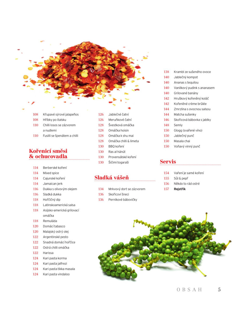 V knize jich najdete hned 130. Můžete si vybrat, zda uvaříte něco jemně hřejivého nebo pekelně ostrého... Správně zvolené koření dokáže pozvednout o úroveň výš každý pokrm. Pronikněte do světa aromatického koření a zbavte se ostychu při jeho používání.