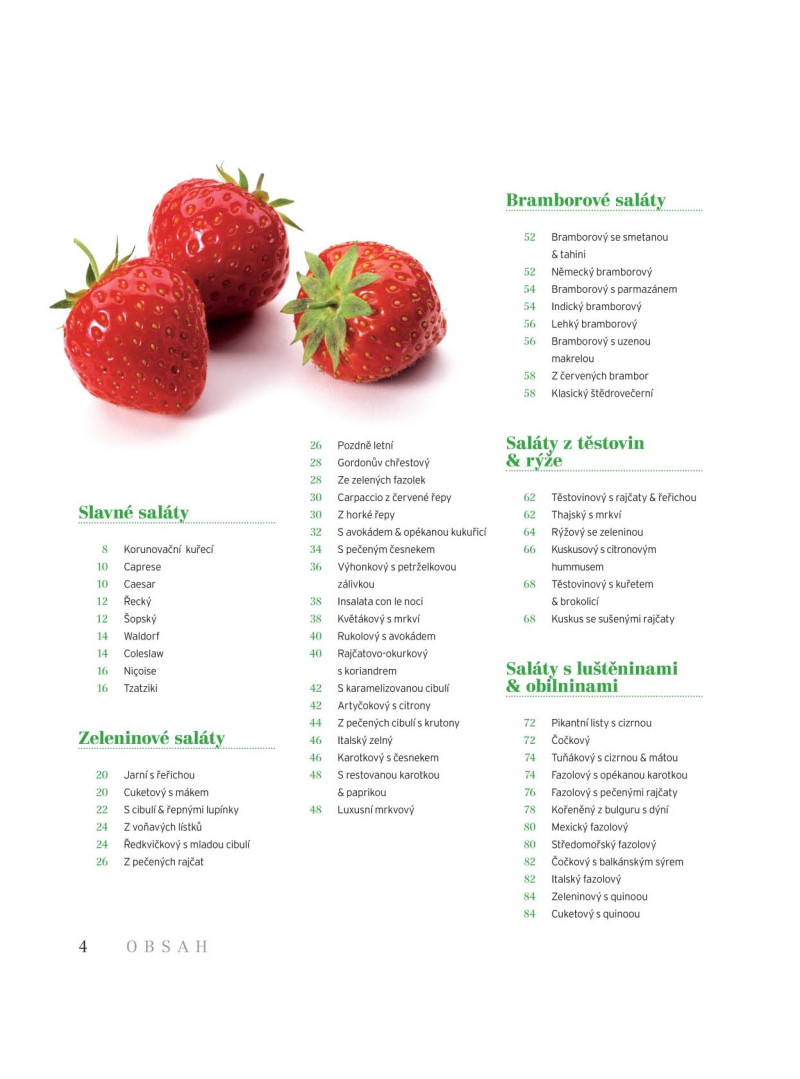 Čtvrtá z řady kuchařek z Edice Apetit Saláty vám nabídne 150 receptů Vyzkoušejte skvělé kombinace s ovocem, sýrem, masem, luštěninami nebo těstovinami. Kuchařka Saláty vám servíruje saláty lehké letní, zimní teplé, i vydatné a přitom zdravé. Staňte se mistrem salátové kuchyně!