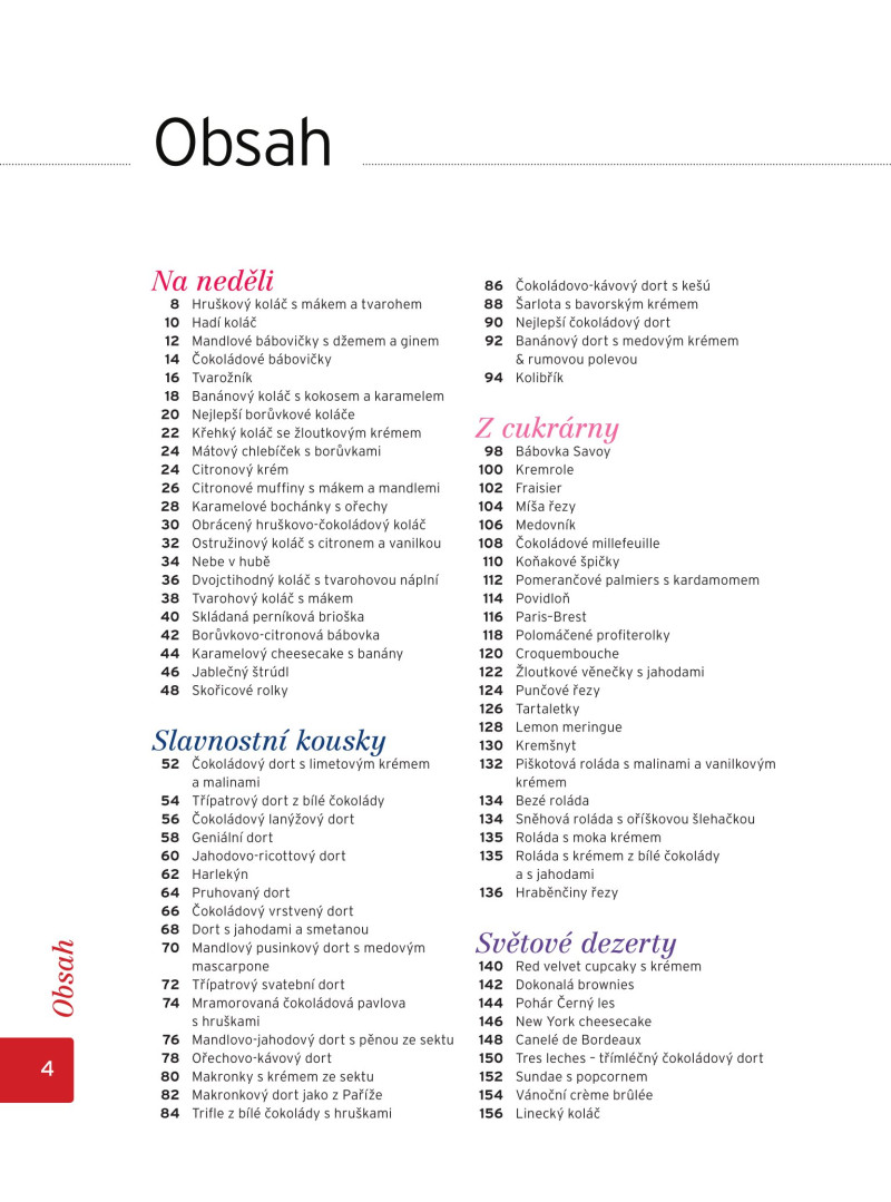 Najdete v ní ty nejlepší recepty na tradiční koláče, omračující dorty, hity cukráren i slavné dezerty z celého světa, které se od roku 2004 objevily na stránkách časopisu Apetit. A samozřejmě jsme přidali i recepty úplně nové! Pomůžeme vám ve chvíli, kdyby budete řešit, jaký moučník upéct na neděli anebo čím se blýsknout na rodinné oslavě. S námi hravě zvládnete upéct koláče z kynutého těsta, třípatrový svatební dort i mistrovské kousky francouzské cukrařiny. Nechybí ani kapitola se sladkými jídly a návod na domácí zmrzlinu a dezerty z ní.