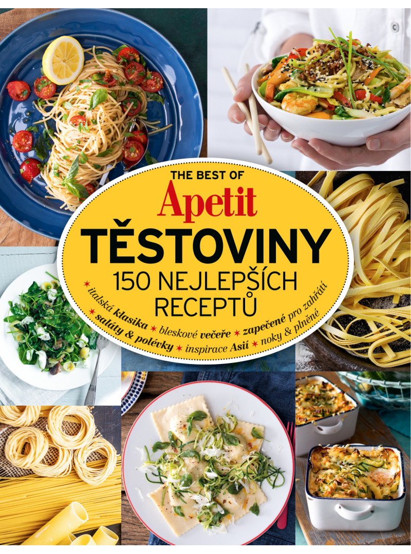 Kniha obsahuje výběr 150 nejlepších receptů na těstoviny, které jsme v redakční kuchyni časopisu Apetit od roku 2004 připravili a ochutnali. Čerstvou pastu i obyčejné těstoviny, gnocchi i taštičky & spol. milujeme v redakci časopisu Apetit stejně jako vy. Otiskli jsme na ně stovky receptů, a tak trvalo opravdu dlouho, než jsme se shodli na těch nejlepších. Po vášnivých diskusích vám konečně nabízíme 150 nejoblíbenějších, osvědčených a do posledního detailu vyladěných receptů. Na 232 stranách najdete všechno od nesmrtelných italských těstovin a decentních pokrmů jako z dobrého restaurantu po bleskové recepty, které vaříme k večeři. Nechybějí ale ani milované recepty z trouby, těstovinové saláty, polévky, ani sladká jídla… Ať se rozhodnete vařit jakékoli z nich, s námi vás úspěch nemine!