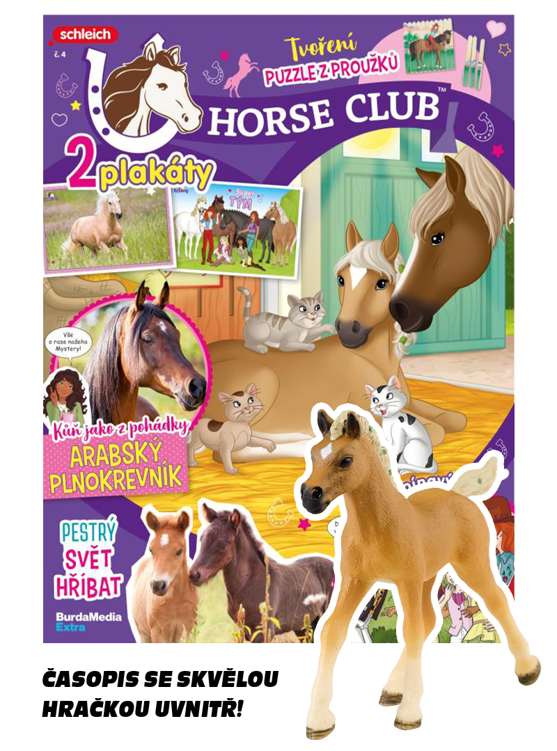 V časopise Horse Club se snoubí všechna témata, při kterých se srdce dívek milujících koně rozbuší. Kromě skvělých omalovánek a kreativních rukodělných nápadů má časopis v každém čísle také zábavné návody na hry, záludné rébusy s koňmi a dva skvělé plakáty XXL. Pomocí školy kreslení se také čtenáři mohou naučit kreslit koně krok za krokem. Součástí časopisu je exkluzivní figurka koně Schleich.