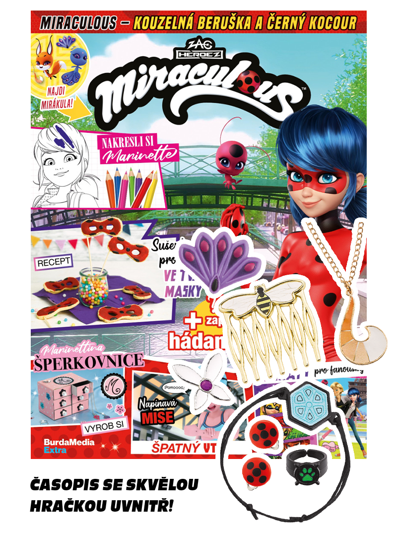 Časopis Miraculous zavede děti do Paříže, kde Beruška a Černý kocour každý den chrání své obyvatele před Lišajem. Čekají na ně napínavé komiksy, záludné hádanky, a chutné recepty. Fanoušci zde také najdou skvělé DIY projekty, které mohou využít k tomu, aby se ještě hlouběji ponořili do zázračného světa Marinette a Adriena. Součástí každého vydání je hračka pro fanoušky Miraculous.